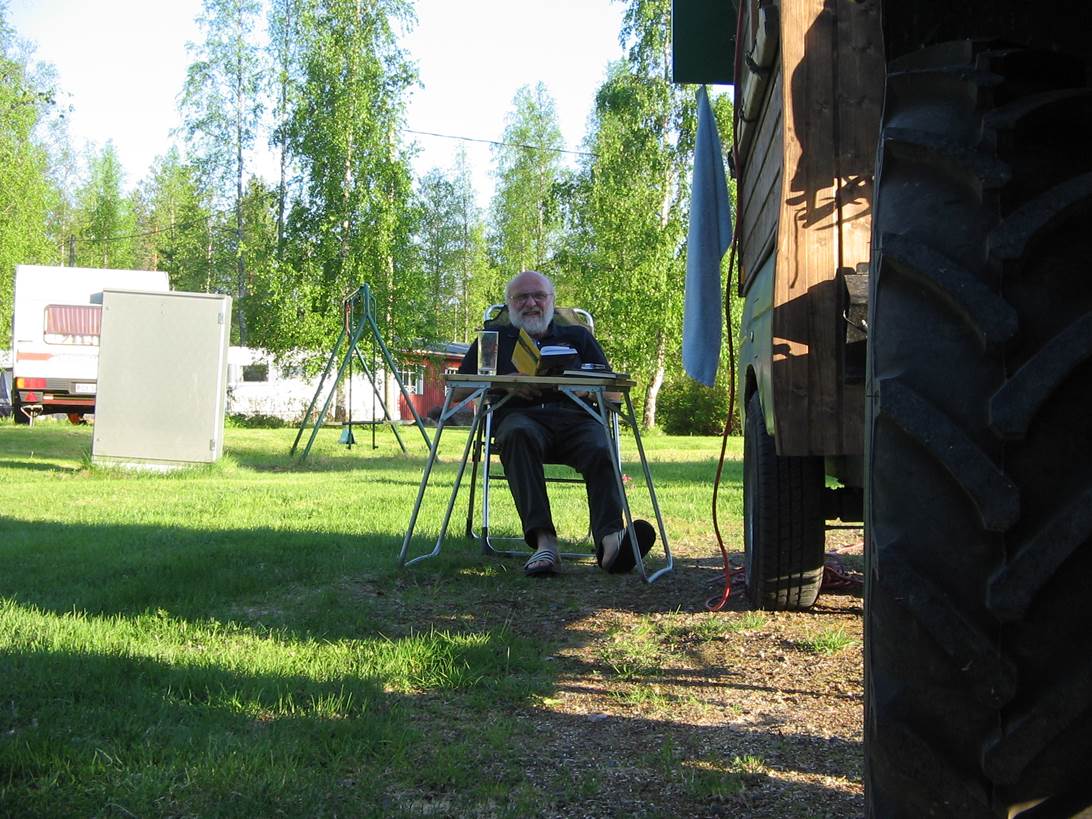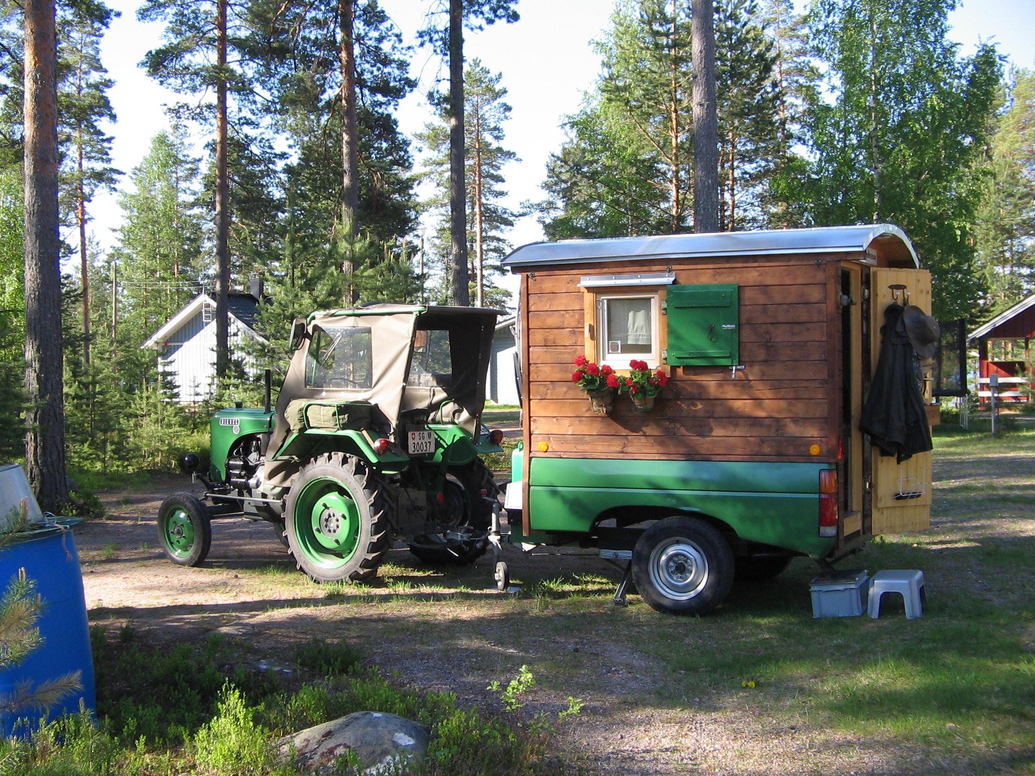 Samstag, 22.6: Ich befinde mich zehn Kilometer vor Filipstad und ca. 60 Kilometer von Kristinehamm entfernt. Es ist sehr kalt und regnerisch. Ich sitze um drei Uhr nachmittags im Schäferwagen und heize was das Zeug hält. Ich esse eine Kleinigkeit und koche Tee, um mich aufzuwärmen. Plätzlich klopft es an der Türe. Draussen steht ein Deutscher und sagt zu mir, dass man meine Autonummer – „SG = Sargans!??“ – hier nicht alle Tage sehe. Wir kommen ins Gespräch. Die Besuche und unangenehmen Begegnunen nehmen zu. Deshalb weiche ich mehr und mehr auf kleine Campingplätze aus. Es klopfen immer wieder irgendwelche Leute an meine Türe. Sie sind halt neugierig. Ein alter Finne zerrt mich gar am Ärmel vor den Schäferwagen um mich zu fotografieren. Fremdsprachen kann er keine. Vielleicht wird er darum grob. Gegen Ende des heutigen Tages wechsle ich die hinteren Räder von links nach rechts um zu testen, ob sich das Profil so gleichmässiger abnutzt. Ausserdem erstaunt es mich, dass ich hier im Nirgendwo plötzlch Internet habe. Die Technik scheint keine Grenzen zu kennen.