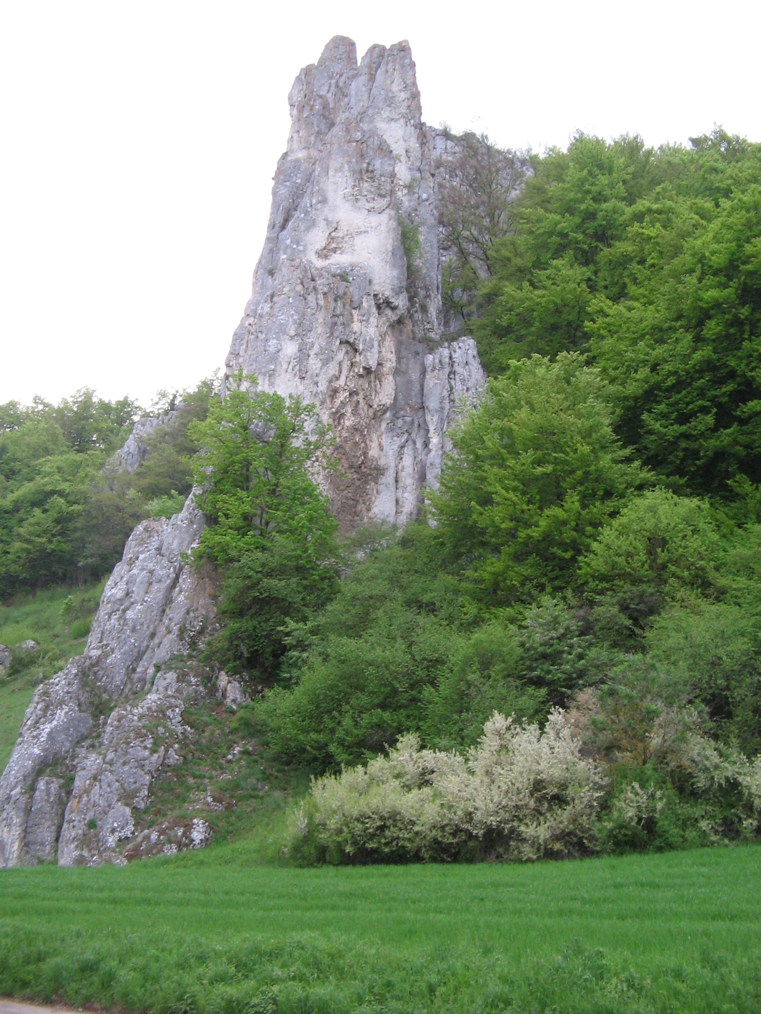 Am darauf folgenden Montag komme ich bis nach Wellheim, wo ich auf einem riesengrossen Parkplatz der Gemeinde schlafen kann. Ich habe schon ein wenig Angst – aber pst, nicht weitersagen 🙂 Ein ehemals protestantischer Pfarrer besucht mich dort. Er war einige Jahre Verlagsleiter in Stein am Rhein, danach hat er sich als Busunternehmer selbständig gemacht. Im gleichen Ort sehe ich später einen Kletterfelsen von mindestens sechzig Metern Höhe – ein Wahnisnn!