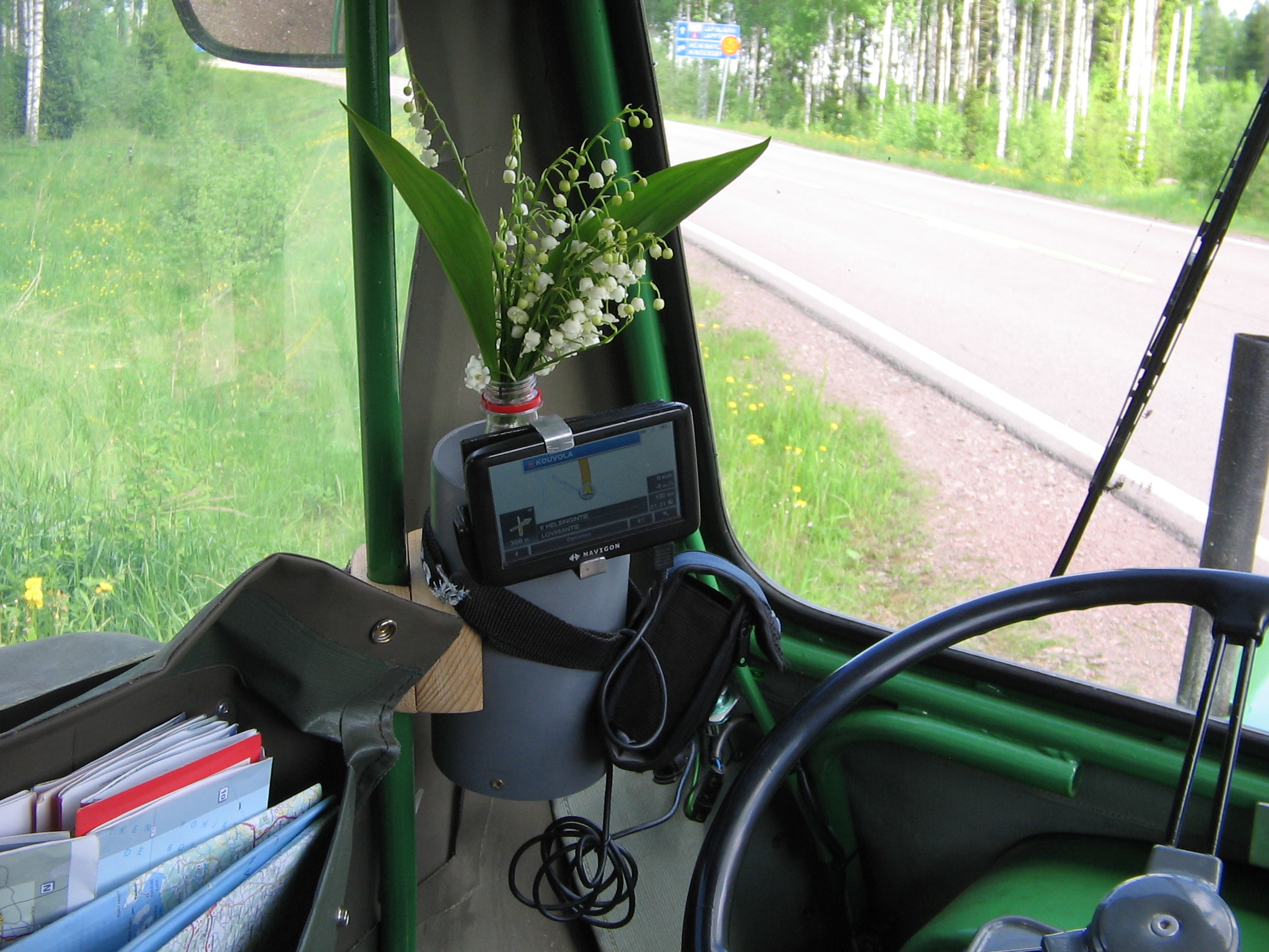 Mittwoch, 29.5: Ich fahre von Pieksämäki bis nach Iisalmi. Insgesamt 180 Kilometer – eine unglaublich lange Tagesstrecke mit dem Traktor. Nun sind vom Rütteln alle vier Melamin-Tassen hin. Kaffee wird ab sofort aus Turnschuhen getrunken 🙂 Diese Nacht verbringe ich auf dem Vorplatz einer Anti-Alkhoholikerkirche. Ich versuche, die vorderen Pneus zu drehen, bin dafür aber zu schwach, oder die Pneus zu hart. Sie werden zum echten Problem.