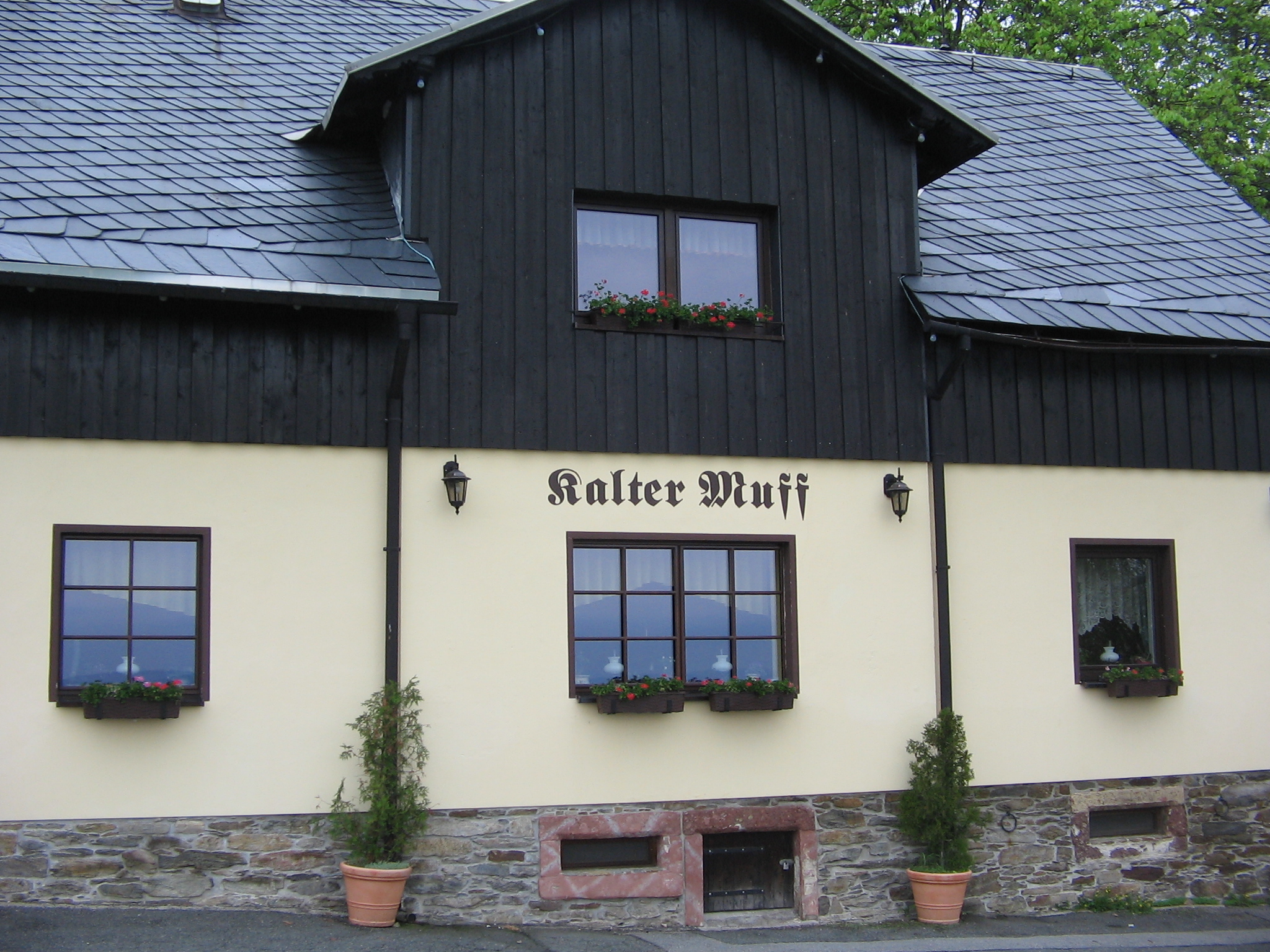 Samstag, 11. Mai: Der Tag beginnt gut, ich mache ein Foto von der Gegend und der einsamen Waldschenke zum „Kalten Muff“. Die Wirtsleute kommen und fragen mich, ob ich friere (ich muss blau angelaufen sein – nein, nicht vom Alkohol, von der Kälte…). Ich bejahe und schon werde ich zu Kaffee und Kuchen eingeladen. Danke liebe Wirtsleute.