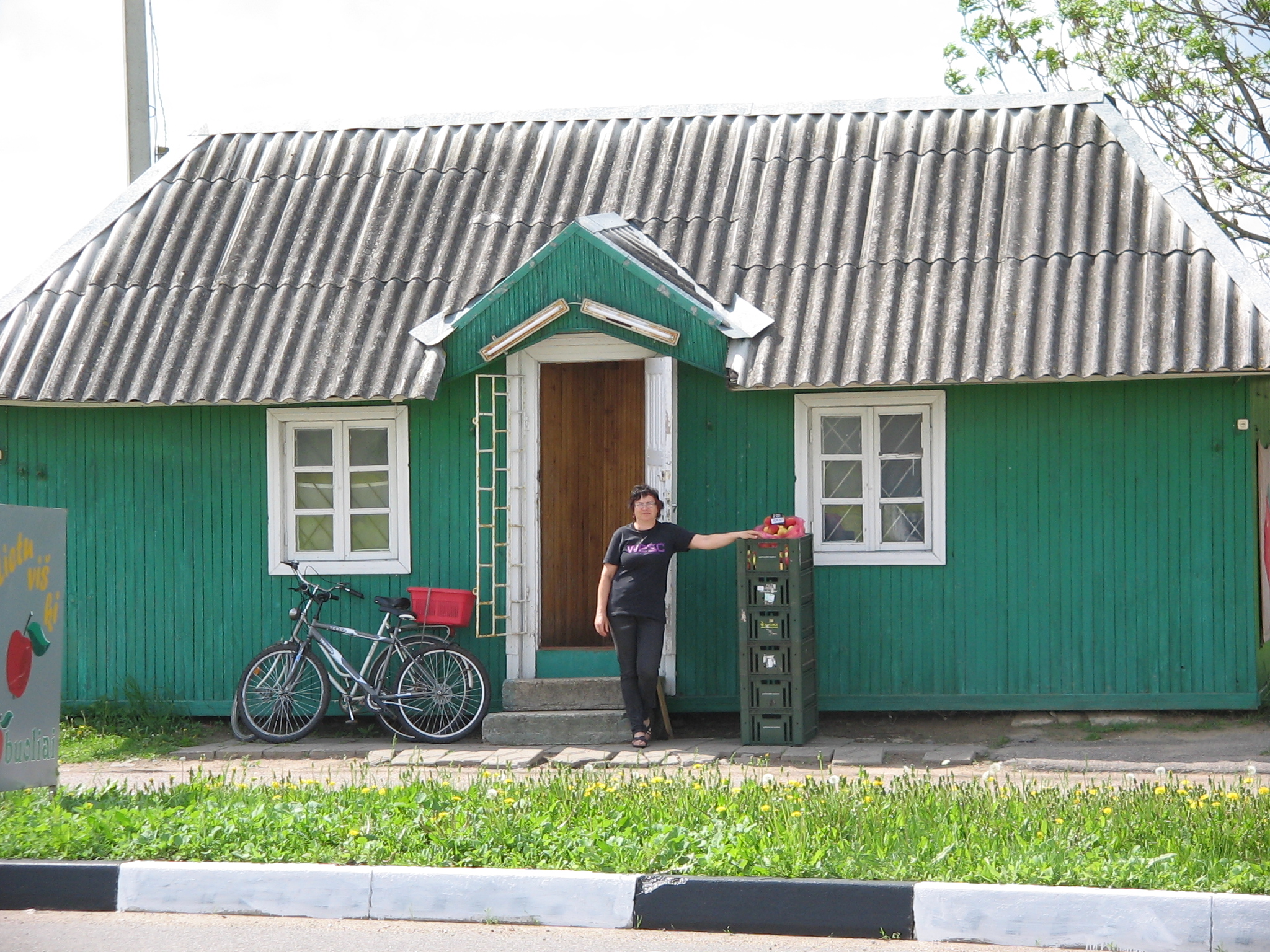 Ich fahre weiter. Die Frau rechts vor dem Haus – ich nenne sie die Apfelfrau – , will mir eine ganze Kiste Äpfel schenken, nur weil ich ihr kurz zuvor mein gesamtes Kleingeld gegeben habe. Auf dieser Strecke fährt ein Maikäfer auf dem Kühler mit (ca. 900m). Dabei sieht er mich stets an, sprechen tut er aber nicht. Leider. Die helvetischen Maikäfer lässt er aber trotzdem grüssen. In Litauen und Lettland ist es übrigens recht schwierig Campingplätze zu finden. Es gibt hier kaum welche. In Lettland bin ich kurz vor dem Verzweifeln. Es ist schon spät. Plötzlich sehe ich eine Tafel: CAMPINGPLATZ. Ich fahre 3,7 Kilometer über eine erbärmliche Strasse Richtung Campingplatz. Dort angekommen muss ich feststellen, dass dieser leider nicht mehr existiert. Beim Zurückfahren treffe ich ein Schweizer Ehepaar, welches darüber in Kenntnis setze. Wir fahren beide weiter. Endlich wieder ein Campingplatz. Leider gibt es hier Mücken ohne. Ausserdem ist alles sehr dreckig. Also weiter. Endlich können wir vor einem sauberen Hotel übernachten. Otti, seine Frau und ich sind echt froh, endlich was Vernünftiges gefunden zu haben. Die darauf folgende Nacht verbringe ich wiederum auf einem LKW-Parkplatz. Auch hier ist es mir nicht ganz geheuer. Estland scheint mir Litauen und Lettland weit voraus zu sein. Die Strassen werden – EU-Gelder sei Dank – besser, die Häuser sind schöner und die Autos alle neueren Datums. Nur die alten, stinkenden LKWs, welche Deutsch beschriftet sind und wohl irgendwann importiert worden sind, sieht man noch vielerorts.