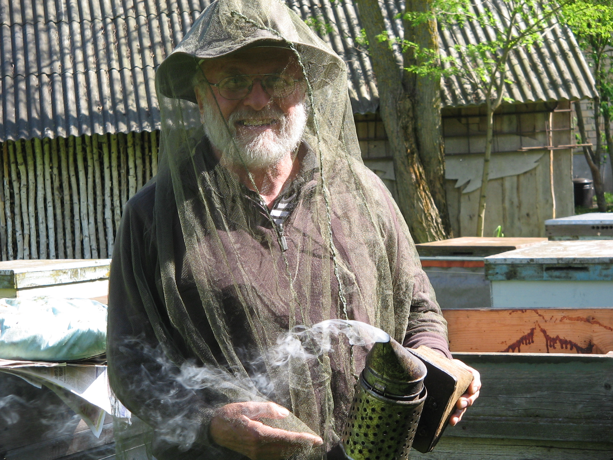 Mittwoch, 22. Mai: Ich übernachte auf einem LKW-Parkplatz, da sonst keine Alternative vorhanden ist. Ein mulmiges Gefühl kommt auf. Im nächsten Ort lerne ich Wladimir kennen. Er ist Herr über siebzig Bienenvölker und betreibt einen kleinen Campingplatz. Nebenbei unterrichtet er Zeichnen an der örtlichen Schule. Seine Frau ist Ärztin. Recht erstaunt nimmt er zur Kenntnis, dass ich – mit meinem Moskitonetz ausgerüstet – bei ihm in die Lehre gehen möchte. Daraufhin führt er mich in die Welt der Bienen ein. Akribisch führt er Buch über jedes Volk. Von ihm erfahre ich auch, dass im Winter jedes der Bienenvölker eine Kiste samt Bettdecke erhält.
